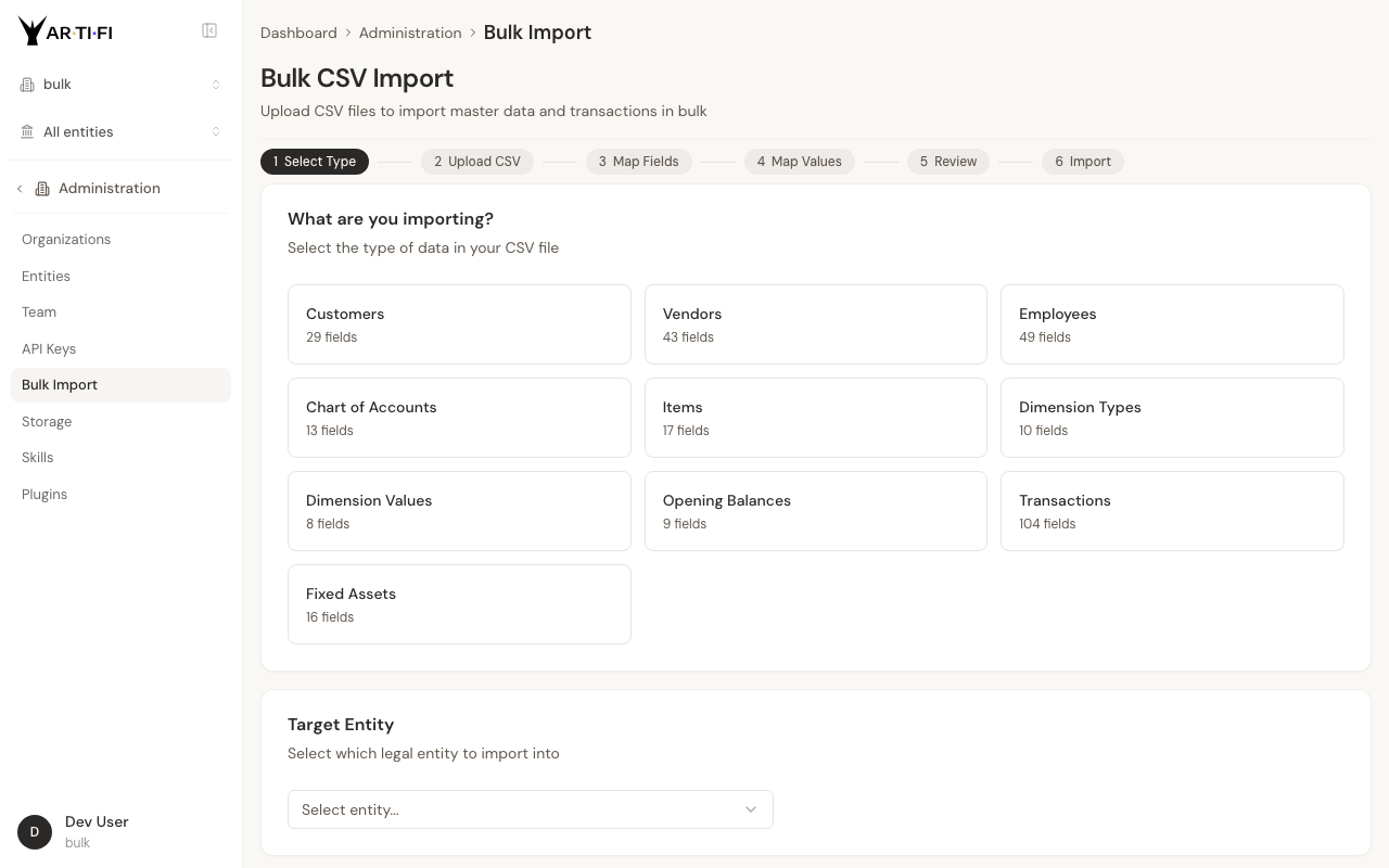 By the end of this guide, your Artifi entity will be fully operational: chart of accounts, vendors, customers, employees, items, dimensions, fixed assets, and opening balances — all in place, with historical transactions imported and balances reconciled. Claude will then have everything it needs to run your day-to-day finance operations.