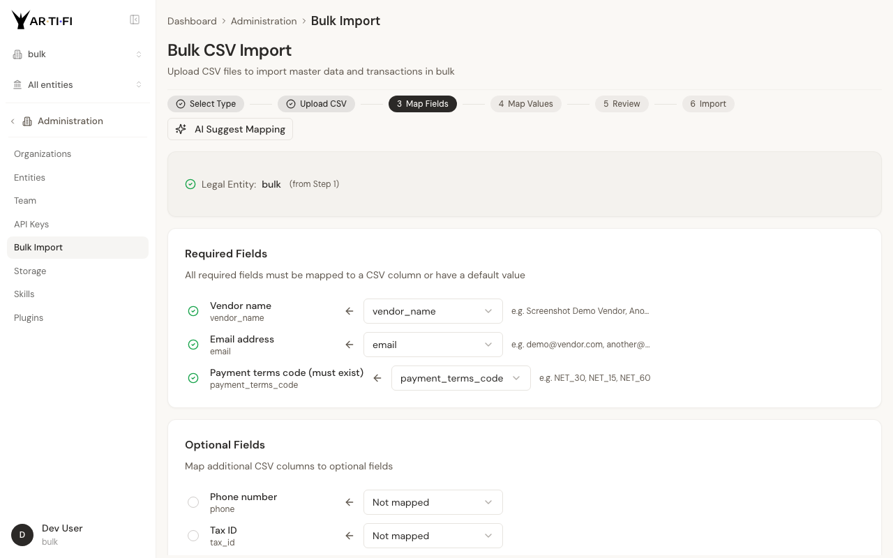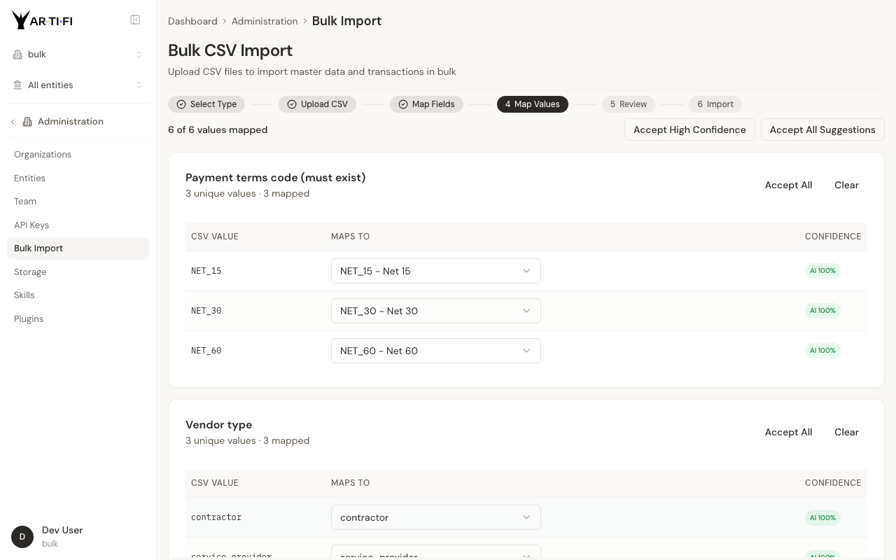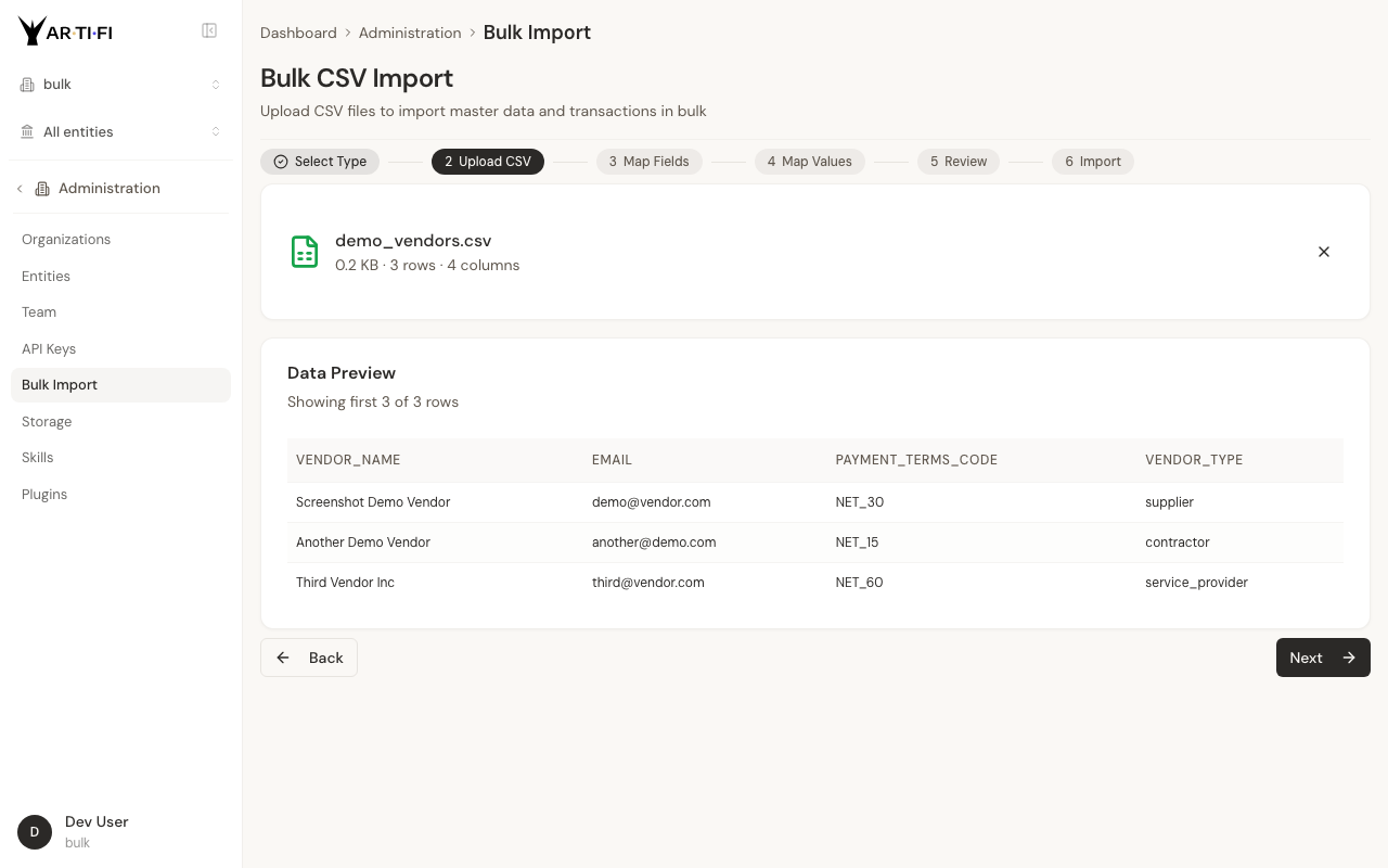 - Spot-check a vendor — Pick a vendor from your source system and verify the record in Artifi. Check that bank account and dimension tags were imported correctly.